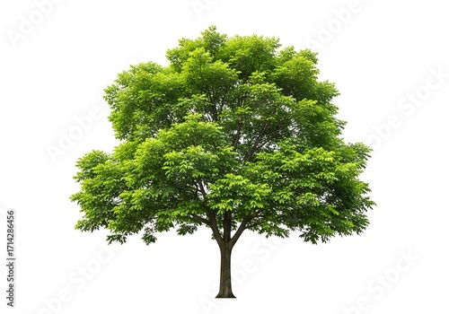 A vibrant, lush tree with fresh green foliage is featured against a pure white background.