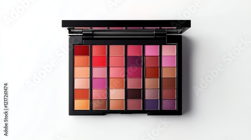 A vibrant makeup palette featuring a variety of shades, perfect for creative looks and beauty enthusiasts.