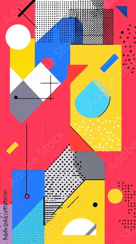 A vibrant mix of geometric designs with sharp angles and bold colors for social media