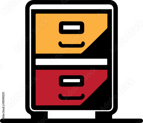 A vibrant, modern filing cabinet with colorful drawers featuring an orange and red design, perfect for office organization.