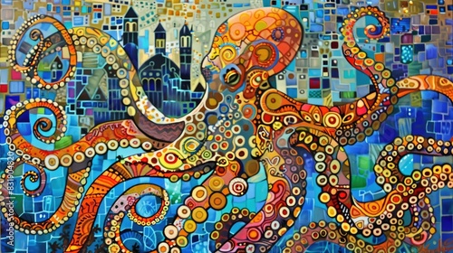 A vibrant mosaic of an octopus, Generative AI