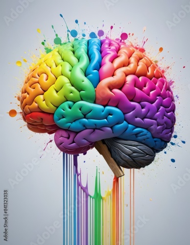 A vibrant, multi-colored brain illustration, dripping with paint, symbolizes creativity and innovation. The splash of colors represents the diversity of thought and the dynamic nature of human