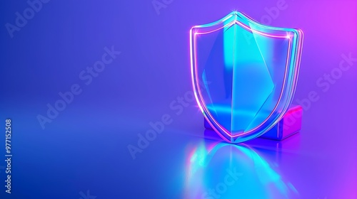 A vibrant neon shield symbolizing protection and security, glowing in a colorful background for digital themes.