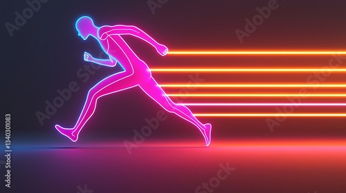A vibrant, neon silhouette of a runner in motion, depicting speed with dynamic light trails in the background.