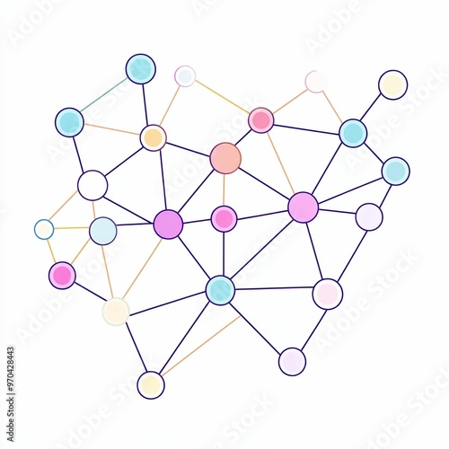 A vibrant network diagram displays interconnected nodes in various colors, representing complex relationships and data interactions in a digital environment