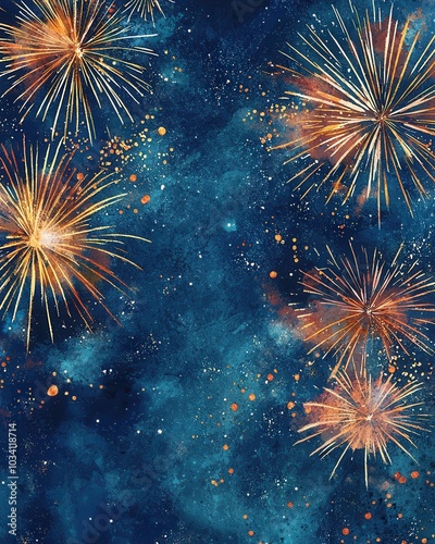 A vibrant night sky filled with colorful fireworks against a deep blue backdrop creating a festive and celebratory atmosphere