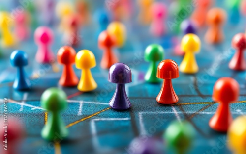 A vibrant notepaper with business strategy text pinned with colorful pins, surrounded by a business team discussing their next steps