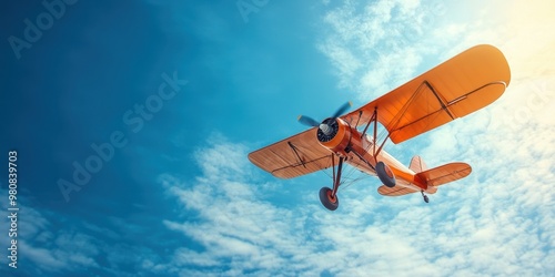 A vibrant orange aircraft flying against a clear blue sky, showcasing the beauty of aviation and adventure in the open air.