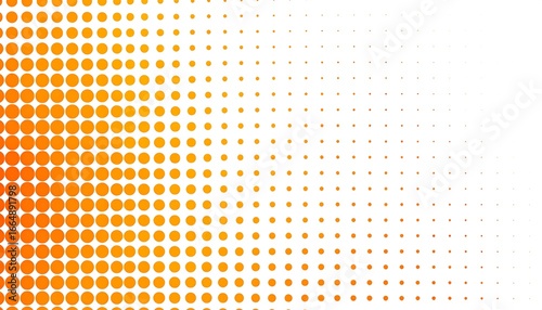 A vibrant orange and white halftone pattern radiates across the image, creating a dynamic visual effect.