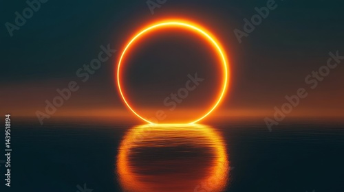 A vibrant orange circle reflected beautifully on the rippled water surface