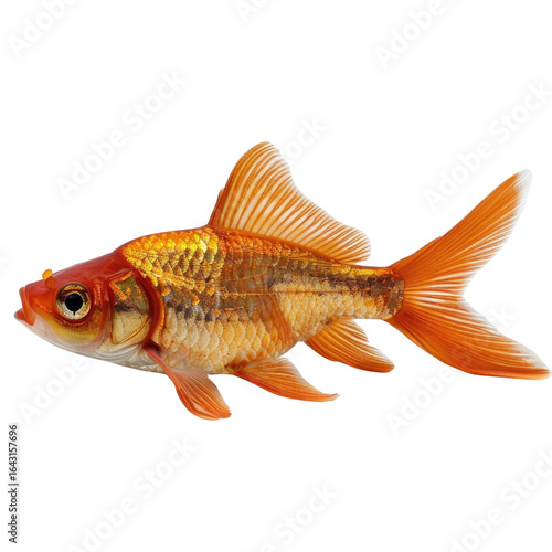 A vibrant orange goldfish with intricate scales, swimming gracefully. background removed