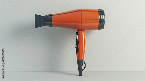 A vibrant orange hairdryer positioned against a neutral background, showcasing its sleek design and functionality.