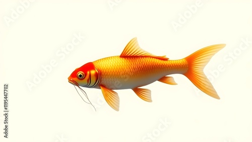 A vibrant orange koi fish with flowing fins swims gracefully against a clean white background.