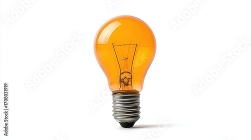 A vibrant orange light bulb against a white background, perfect for illustrating concepts of creativity, energy, and innovation, Ideal for use in advertisements, blog posts, or design projects,