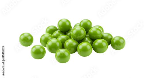 A vibrant pile of glossy green marbles scattered on a white background, ideal for creative projects and design use