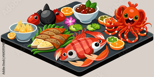 A vibrant plate of fresh, delicious salmon sushi with healthy green vegetables, a perfect appetizer