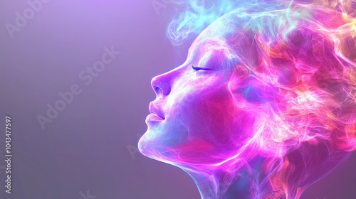 A vibrant profile of a woman surrounded by colorful, swirling light, representing beauty and ethereal energy.