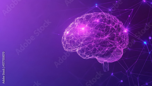 A vibrant purple abstract representation of a brain with intricate connections, symbolizing the interplay between artificial intelligence and cognitive functions in a modern digital landscape