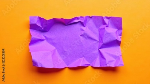 A vibrant purple crumpled paper sheet rests on an orange background, showcasing a striking contrast in texture and color.
