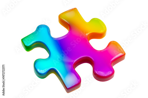 A vibrant puzzle piece featuring a gradient of rainbow colors
