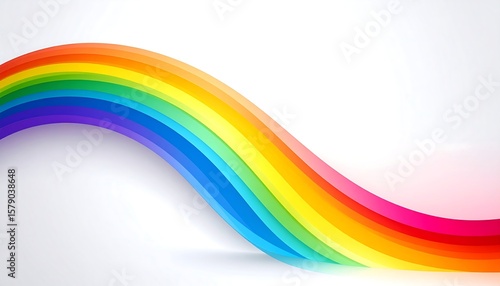 A vibrant rainbow, a curving ribbon of color, against a light gray background
