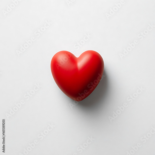 A vibrant red heart on a clean white surface, symbolizing love, affection, and heartfelt emotions.
