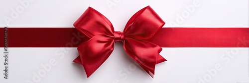 A vibrant red satin ribbon bow, elegantly positioned on a white background