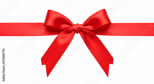 A vibrant red satin ribbon tied in a perfect bow, ideal for gift wrapping and adding a festive touch to your designs.