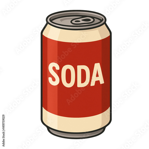 A vibrant red soda can featuring the word "SODA" prominently displayed.