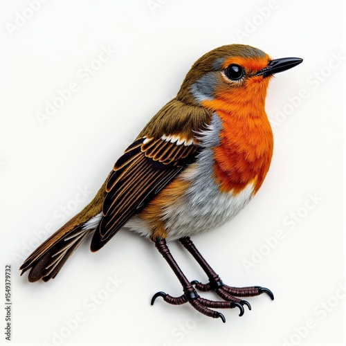 A vibrant robin perched elegantly against a bright white backdrop, showcasing its striking plumage.