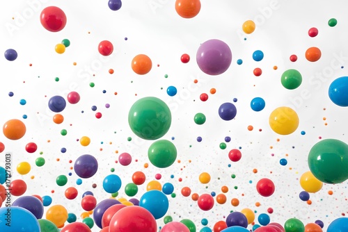 A vibrant scene of countless colorful spheres floating against a bright white background, creating a playful, joyful, and dynamic composition full of energy