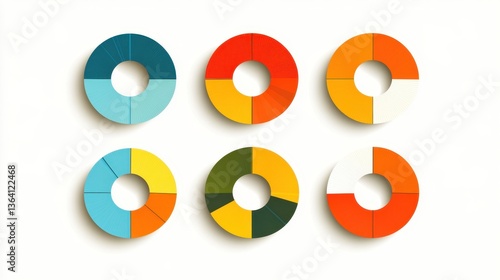 A vibrant set of six circles, each showcasing a unique color: bright red, sunny yellow, deep blue, lush green, soft purple, and warm orange, arranged in a playful pattern.