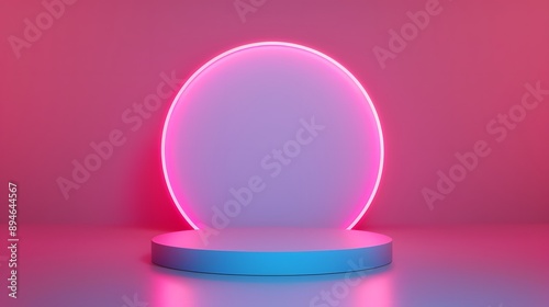A vibrant setup featuring a glowing circular display, perfect for showcasing products with modern aesthetics and colorful lighting.