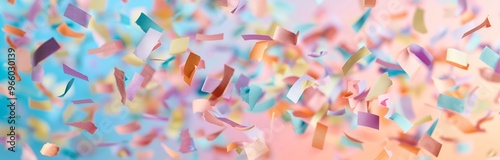 A vibrant shower of colorful pastel confetti floating in the air, creating a festive and celebratory atmosphere.