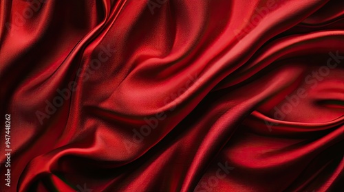A vibrant, silky red satin fabric arranged in elegant folds, creating a rich and luxurious flat lay backdrop.