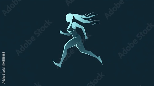 A vibrant slate blue logo of a running woman, symbolizing strength and agility, suitable for a company promoting fitness