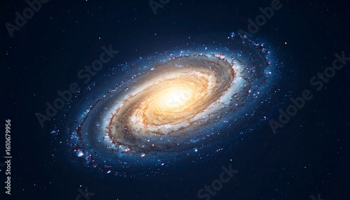 A vibrant spiral galaxy, swirling arms of gas and dust, bright core