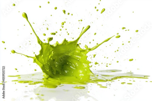 A vibrant splash of green liquid creates an energetic and dynamic visual effect, emphasizing creativity and movement.