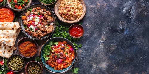 A vibrant spread of delicious dishes featuring colorful ingredients, perfect for culinary inspiration and food styling.