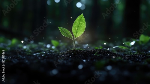 A vibrant sprout emerging from dark soil. Nature's rebirth, a tiny green life