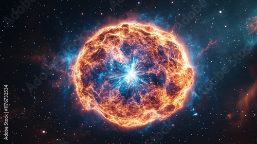 A vibrant supernova explosion in deep space, showcasing fiery orange and blue hues against a starry backdrop.