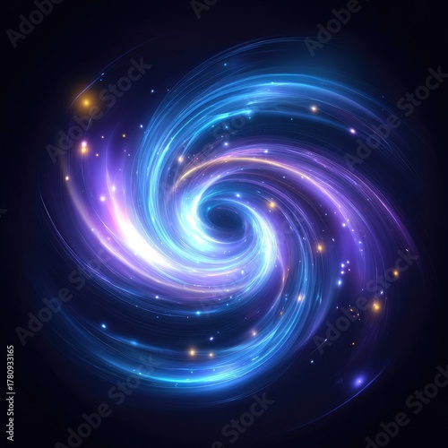 A vibrant, swirling vortex of luminous, blue, and purple light beams, radiating outward from a central point, against a dark background, creates a captivating abstract design.