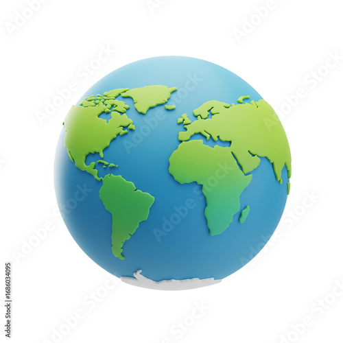 A vibrant, three-dimensional illustration of Earth showcases continents in green against a blue ocean, representing our planet's beauty.