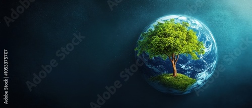 A vibrant tree grows on a globe, symbolizing sustainability and the connection between nature and our planet.