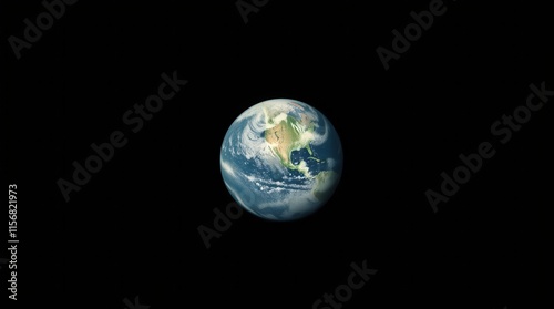 A vibrant view of Earth, showcasing blue oceans and green continents against a dark backdrop, symbolizing our planet's beauty and fragility.