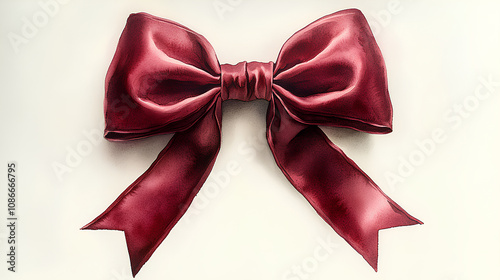A vibrant watercolor painting of a beautifully tied deep red velvet bow with a subtle shadow, on a clean white canvas