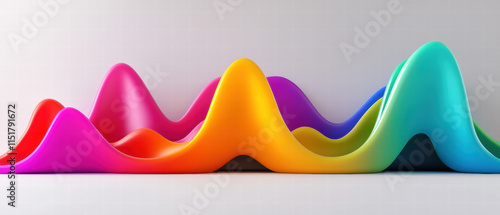 A vibrant wave-like design featuring colorful peaks in shades of pink, purple, orange, and teal against a neutral background.