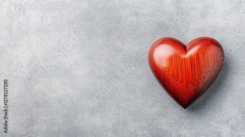 A vibrant wooden heart on a textured gray background, symbolizing love and emotion.