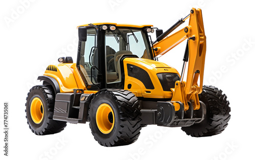 A vibrant yellow construction vehicle stands out against a pristine white background