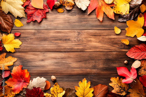 A view of an autumnal and colourfully decorated table for the feast of Thanksgiving. In the background are seated people. AI generative.